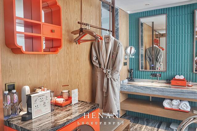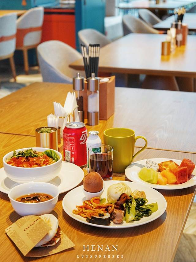 我住的是他们家的大床房,空间宽敞、设施齐全,色调既活泼又有气质,卫浴分离,冰箱里免费提供了只有洛阳才能喝到的汽水“海碧”,早餐品种丰富,相当美味~晚上还有夜床服务,并赠送了无乳糖牛奶和精油助眠,真的很贴心!
