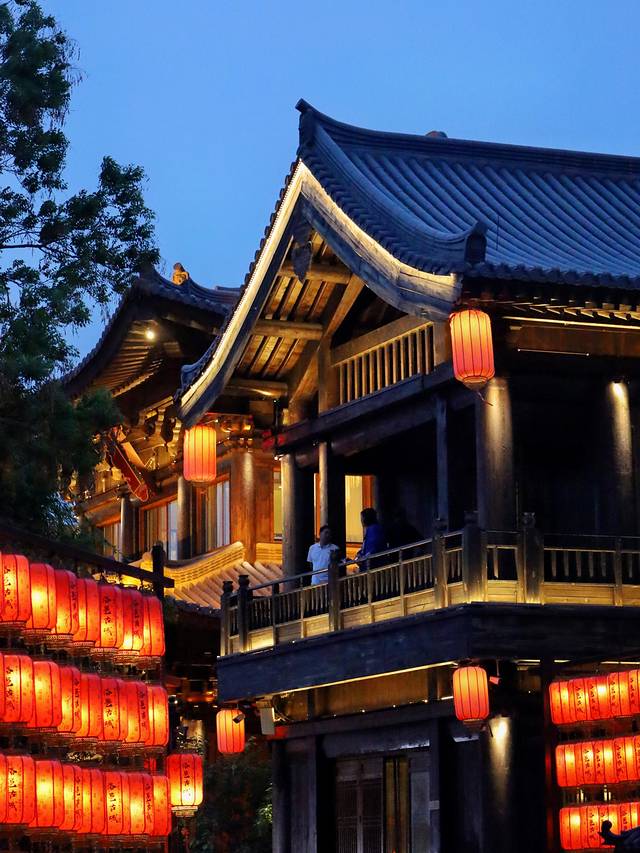 就算灯光秀结束了,大家也迟迟不愿离开,回头一看明堂天堂景区,晚上亮灯后更加好看了!