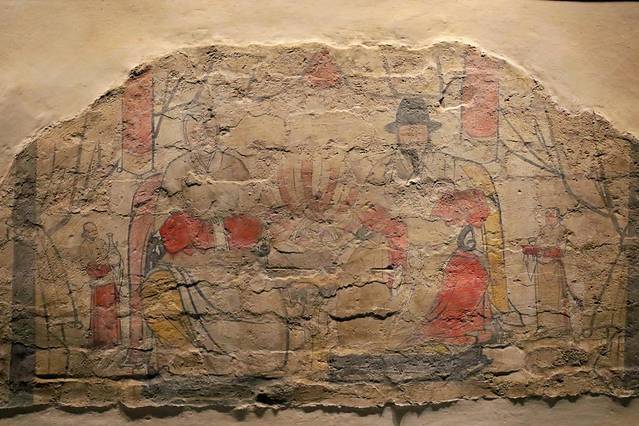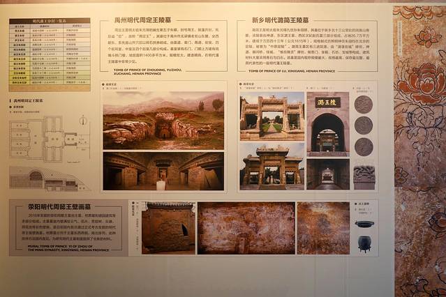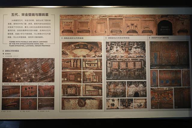 馆内按照展陈内容分为三部分《葬制大观——洛阳历代古墓集萃》《洛阳北魏帝王陵》《砖画青史——馆藏宋金雕砖展》,而这里主要看的就是“洛阳历代古墓集萃”,其中的九个朝代25座搬迁复原的自西汉至宋金时期的代表性墓葬。看展柜里的文物,哪有深入地下了解墓室建筑、壁画、砖雕等来的真实,这样才能理解古人对死亡的看法。