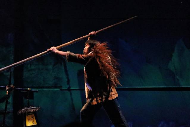第三幕的开场着实让我震撼。我猜到按钮会打开另一扇门,但没想到会是这样的场面。就好像在行驶在回忆时光的时候,时空出现了裂缝,把我们带入了一千四百年前凿窟人的生活中。那一句“号子喊出他们为了让后人看到这壮观的场景,付出的汗水”,让人动容。而归国的游子只想更好地将石窟文化宣传出去。