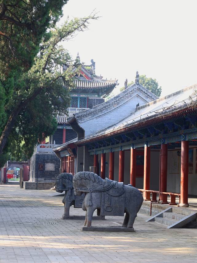 逛完石窟后回到酒店,发现这个景区离酒店挺近。时间还早,我们就又动身前往参观。关林迄今已有一千七百多年历史,前面是祠庙,后面是墓冢,是中国唯一集“冢、庙、林”三祀合一的古代经典建筑群。相比其他景区,这里算是小众景点,人不多,名气也不高,但却能惊艳到你。作为原洛阳老三件套之一,关林竟然掉队了。另外两个是大名鼎鼎的白马寺和龙门石窟。