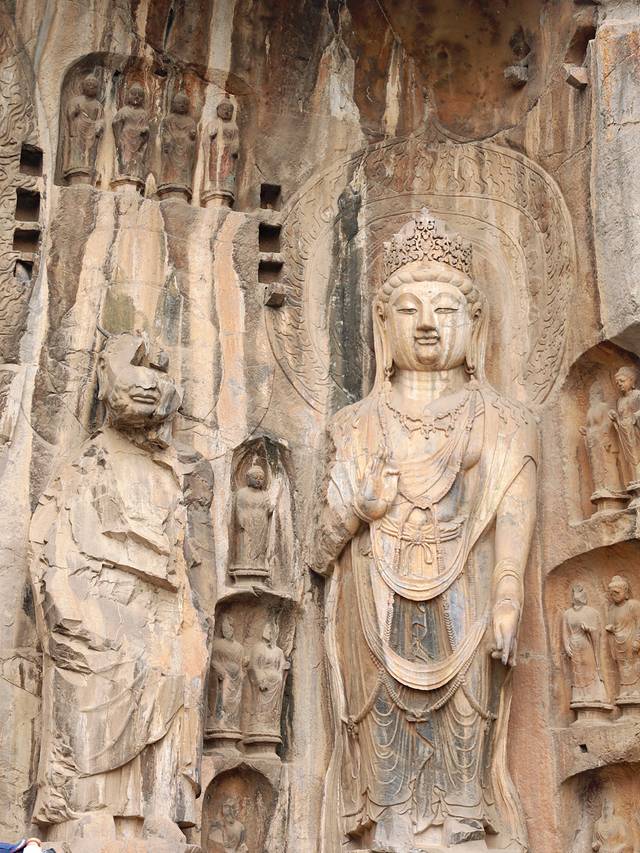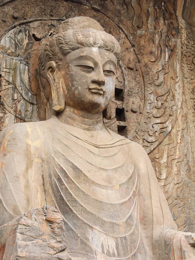 据说大佛是按照武则天的容貌仪态所雕刻的,卢舍那大佛面带微笑,雍容华贵,气度非凡,极具美感。