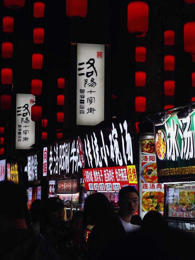 从山陕会馆出来后,一场小雨把我们送到了洛邑古城。洛邑古城坐落在洛阳老城区,古韵十足,历史文化底蕴深厚,有很多历史遗迹。不过不可否认的是,古城的面积不是特别大,但是商业却非常完善。最主要的是,这里到处都是旅拍的小姐姐,尤其是亮灯后更加夸张,一个点位能有六七位拍照的,大灯直射。