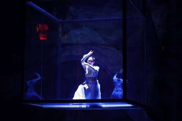 时间一到,光与声瞬间变成一条记忆隧道,带你穿梭到历史的齿轮当中。引路人登场,第一幕的主角是一位文物修复师,他讲述了河图洛书的起源,开启了华夏五千年的历史记忆。