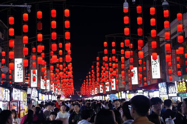 十字街从古至今都是商人聚集的地方,如今是洛阳最热闹的小吃街之一。这条街紧挨着丽景门,人流量极大,街道两旁的小吃摊位紧密相连。我们逛了好一会儿,肚子也饿了,便在这条街上吃了些东西。