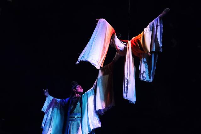 第二幕,在洛河摆渡的船夫划着船出现了。他行驶在洛水之上,听着来往船客的故事。在这洛水之上,有一个关于洛神的传说。通过舞女的精彩演艺,展现出了一段凄美的爱情故事。
