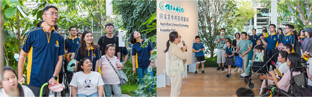 在北京场,罕见病病友及其家属和新航员工及瓷娃娃罕见病关爱中心员工共计60余人在中国农业科学院国家农业科技创新园参观了中国首个AI Farm垂直农场、智慧农业物联网、叶菜自动化种植试验室、果菜种植实验室等区域,了解面对目前土地资源有限,耕地面积缩减等问题,科学家们做出一系列的应对举措;在园艺创新中心,通过“与蘑有约”课堂与“植物自我防御”课堂,探索让人类和地球更健康的菌类循环农业技术以及令人惊叹的自然生存智慧;最后,在Farm IN城市森林农场,通过树叶艺术画课堂,将艺术创作与农业实践相结合,亲手绘制一片绿叶,描绘着对未来绿色健康生活的美好期待与祝福,促进对自然资源的保护意识,不仅丰富了学习体验,还通过实际的操作和创作,更加深入地理解可持续农业的重要性。