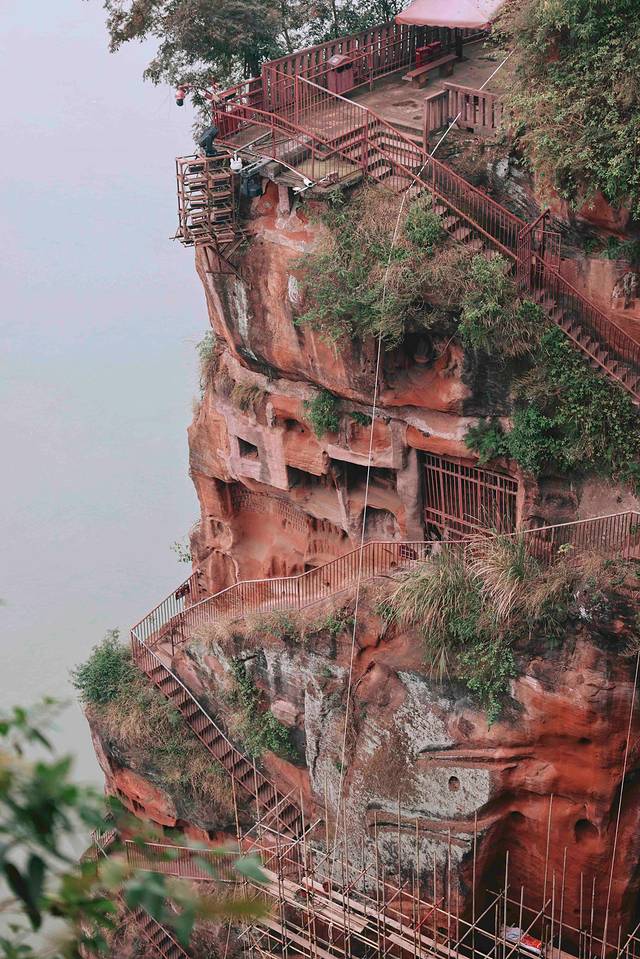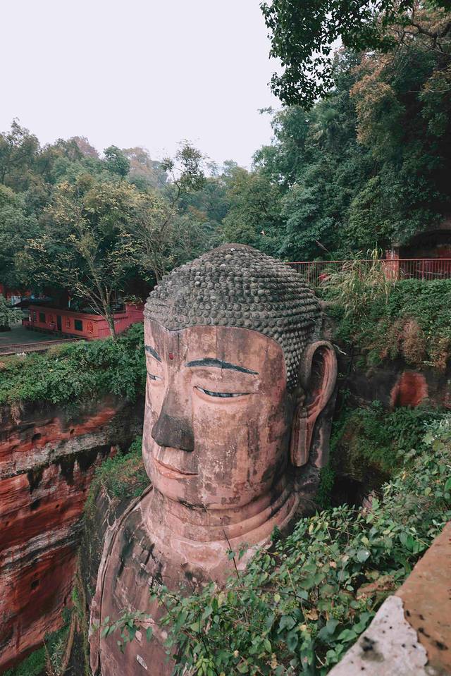乐山大佛是世界上最大的摩崖石刻佛像之一,始建于唐代,历时近90年竣工。高达71米的大佛修建在岷江、青衣江和大渡河的汇流处,面朝江水,背靠青山,成为当地一处不可多得的文化与自然奇观。