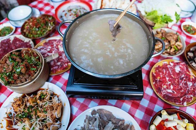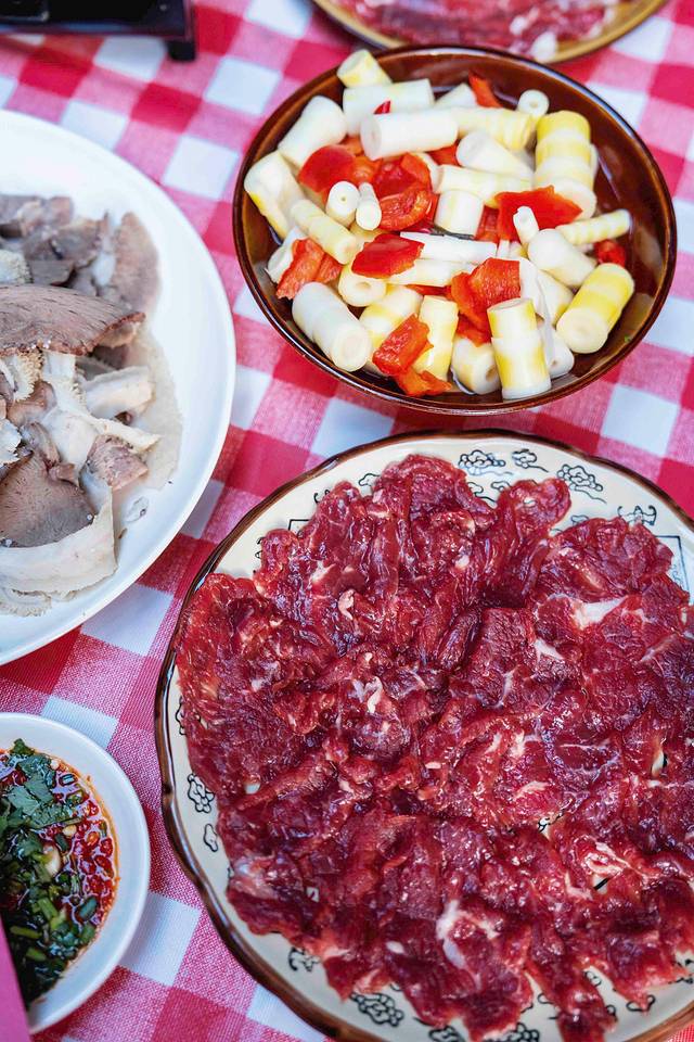 参观完“数游峨眉”,推荐去品尝美食,在“只有峨眉山”演出附近,藏着一家颇具特色的跷脚牛肉店,旁边是郁郁葱的竹林。这家店是乐山市的美食代表之一。