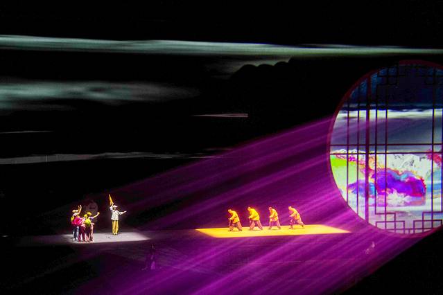 由于时间的关系,我们只欣赏了“云之上”部分,但其震撼的表演已经让我难以忘怀。这个部分分为六个独立的篇章,每个篇章都通过精妙的舞蹈与音乐,传达出深刻的主题。