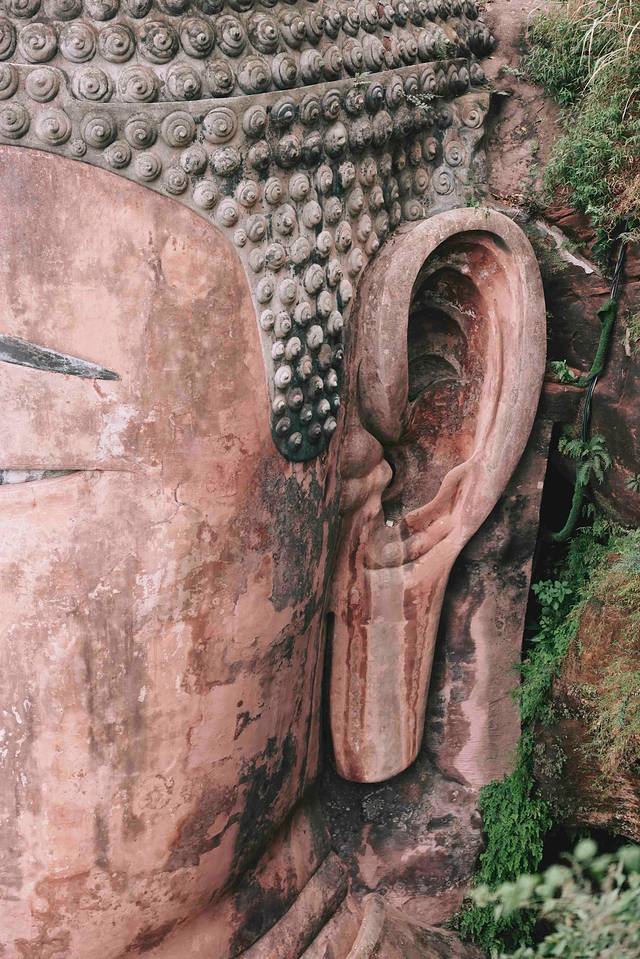 乐山大佛的雕刻工艺堪称古代艺术的精髓。佛像的面部表情宁静祥和,细致入微的雕刻见证了工匠们的卓越技艺。佛像的整体构造结合了周围的自然环境,巧妙地利用了岩石的自然形态,故与山体融汇。大佛的头宽大,耳垂下垂,身躯雄伟,象征智慧与慈悲。