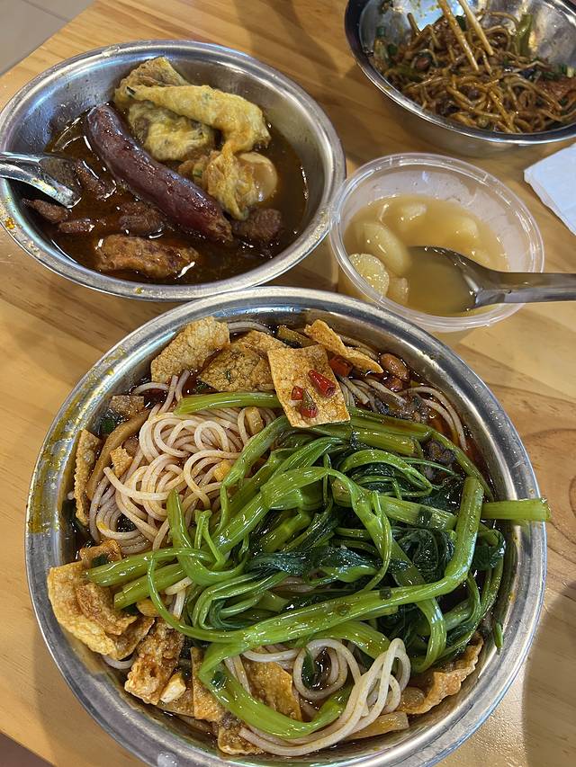 深巷螺蛳粉(城站铁一总店),就在住的楼下,最后一家是我吃的最好吃的,他家特色是炒螺狮粉,味道也不错就是我觉得有点贵。汤的螺狮粉太好吃了,炸蛋尤为出色,是炸的酥酥的一大张饼的那种,吃了三了都不过瘾。还有腊肠,3元一根吃了两根。汤很好喝,店里摆摊卖的糖水不好喝不要买。