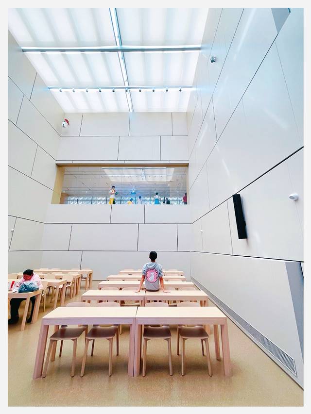 孑民图书馆可不单单只是图书馆,除了图书借阅和提供阅读场景的功能之外,图书馆还提供了展览区可以参观游览、还提供了休闲区可以放松身心、也提供了多功能去可以办活动,也适合拍照打卡。