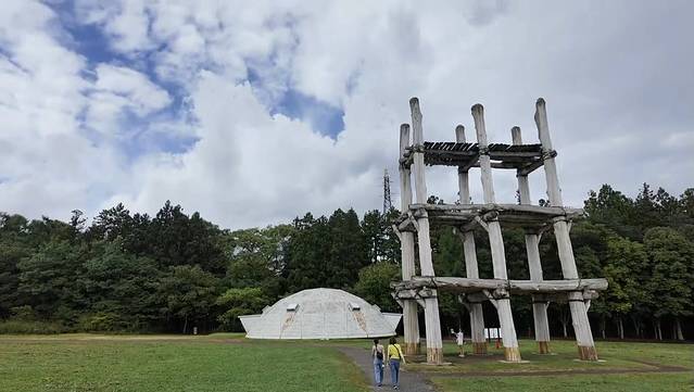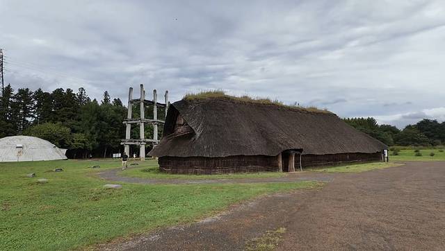 美术馆出来之后走十分钟,就到了三内丸山遗迹,里面就是绳文人生活的一些考古现场,一个个小草棚还挺有特点的,遇到很多小学生初中生秋游的