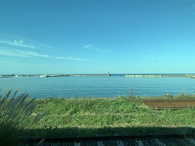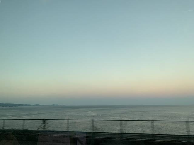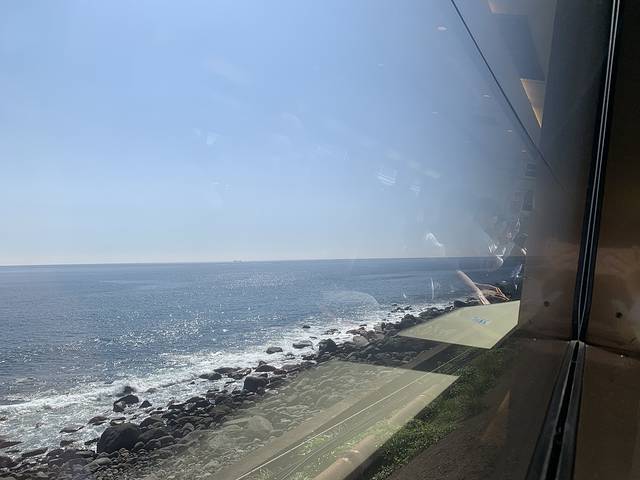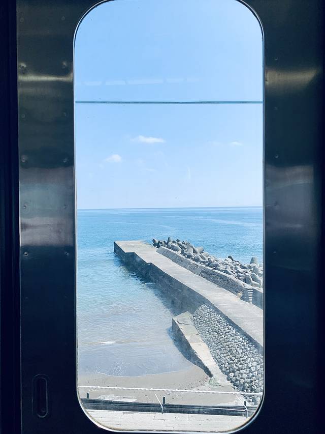 9:00左右上车,早上就是好,面向大海一侧(列车前进方向左侧)的位子还空着一些。选好位子之后,就静待美景扑面而来吧!早上的阳光绚烂不刺眼,和蔚蓝的大海与白色浪花,妈妈我坐上了千与千寻的海上列车了!
