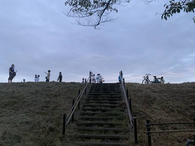 调布花火没有看到比热海的好看的图案,但是氛围更local,全都是一家来看的,铺好野餐垫、小桌子小椅子、扑克牌、吃的喝的,跟过节似的,好幸福啊