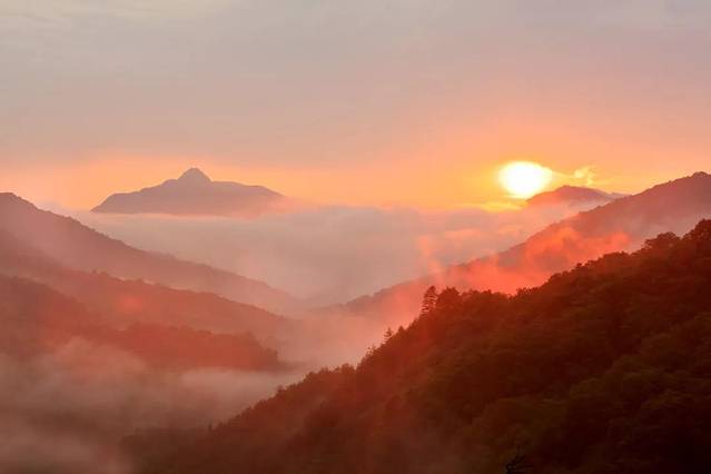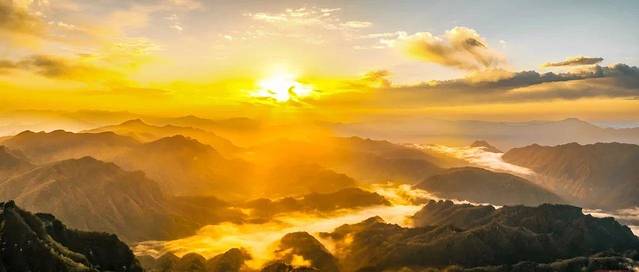 随着时间的推移,这抹金色会愈发浓烈,直到光亮倾泻而出,点燃整个云海,由奶白转为暖黄,再到耀眼的金橙,层次分明,甚至会有一种神圣的感觉,看到这种场面,说明你已经观赏到日出界最封神的画面了!