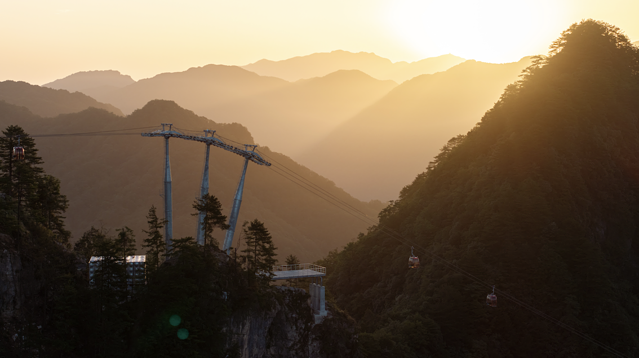 坐索道的时候就可以看到燕子岭上烟雾缭绕的晨雾,以及远山朦胧的景色。