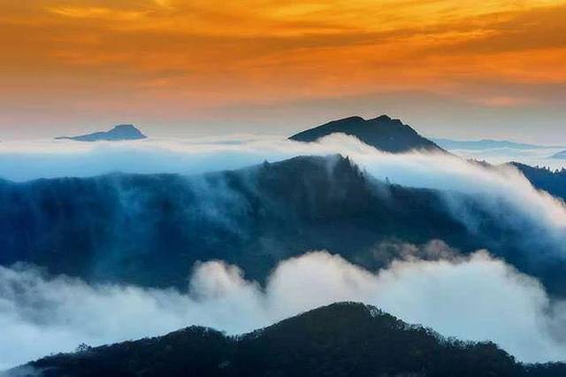 在开阔的山上远眺日出升起的天际线,场面的宏大是绝对拍不出来的,也就是说你亲眼来看到的要比照片所展示的还要震撼数十倍!燕子岭上云雾汇聚,比在地面看过的更聚拢、更紧凑,波动着、推挤着、翻涌着,亲身所至,只觉得心中有一场无声的交响乐正伴随奏响。