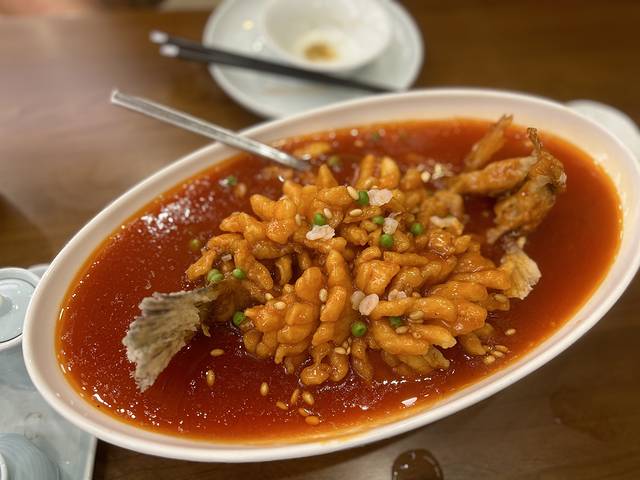 偏酸口儿 不腻很好吃 鱼肉只有贴近皮的地方稍腥 其余地方扎得很脆 现做的