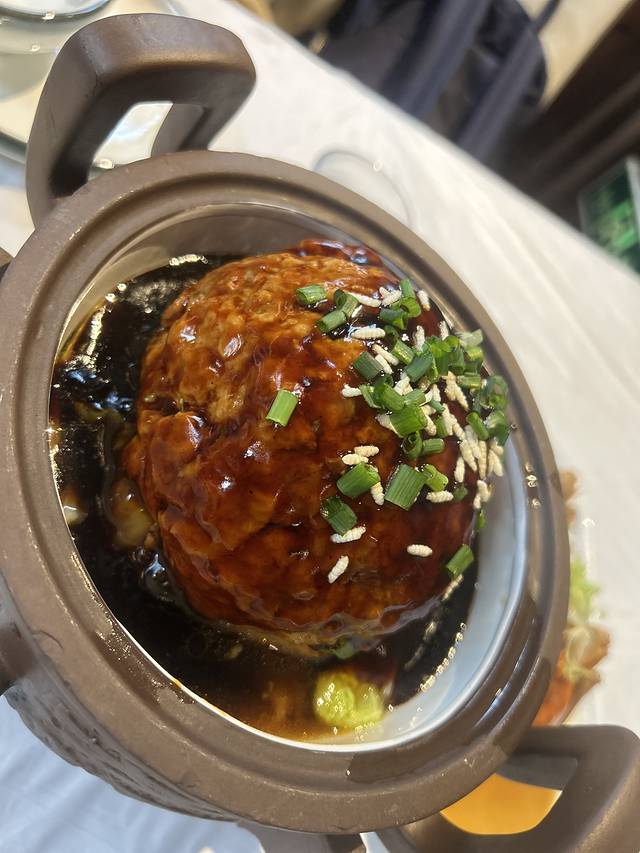极品狮子头600g , 很大一个狮子头 红烧的芡汁勾的很浓稠 咸味儿不是很重 里面包了好几颗咸蛋黄
