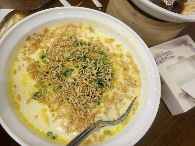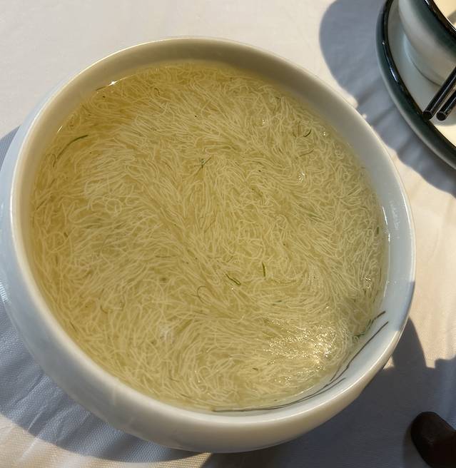 文思豆腐羹, 刀工真的很厉害 豆腐切成细细的丝 像面线糊一样 口味就是普通蛋花汤的味道 勾芡的小咸口儿