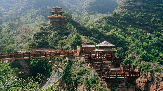 黄崖洞的山虽然很高,但是景区建设很到位,不用爬山就可以登顶赏景,主打一个不费吹灰之力游山玩水。