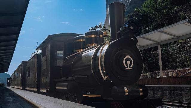 景区接驳车,再常见不过了吧?但是你见过用火车接驳游客的吗?而且还在山崖间建起了火车站。