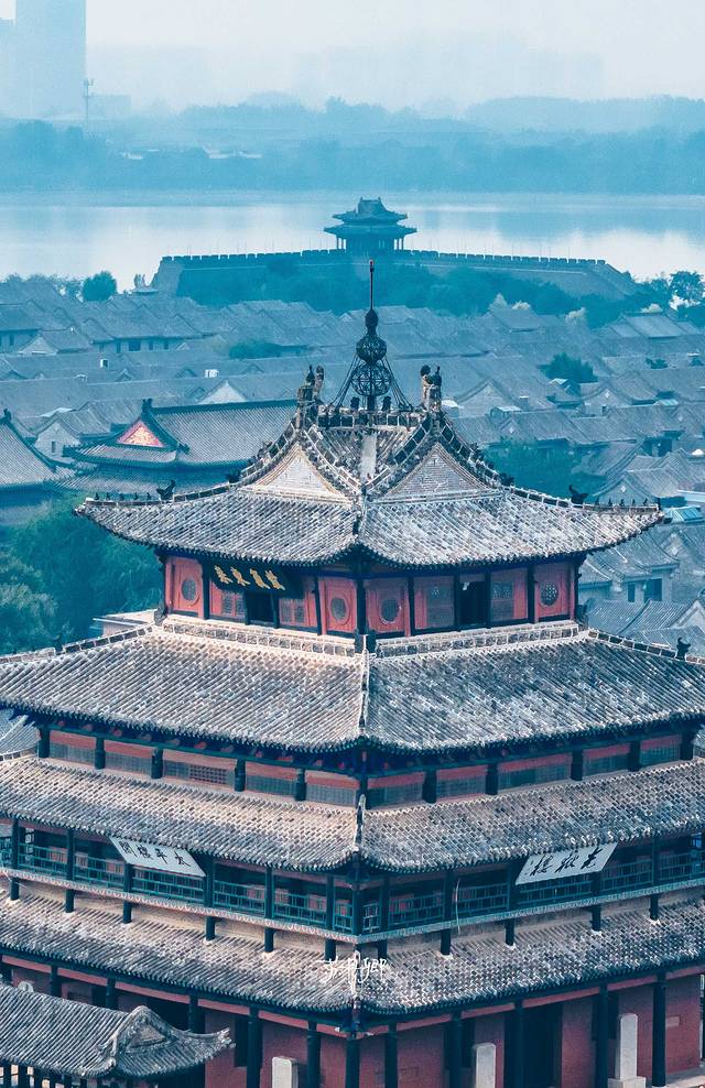 古城最高处位置是光岳楼(必打卡),乾隆皇帝御笔题名“天下第一楼”,是中国现存的最高大、最古老的古楼阁之一。