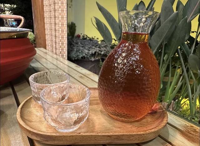 自酿普洱茶酒淡淡的茶香与酒精的结合恰到好处,为这一顿饭增添了不少乐趣。