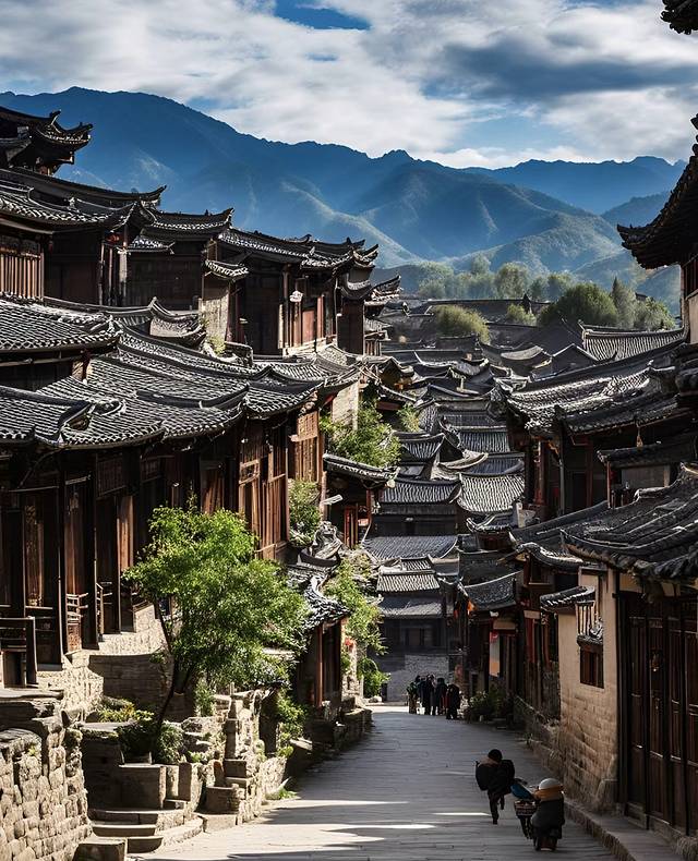 束河是纳西语,也称为“绍坞”是“高峰之下的村寨”的意思