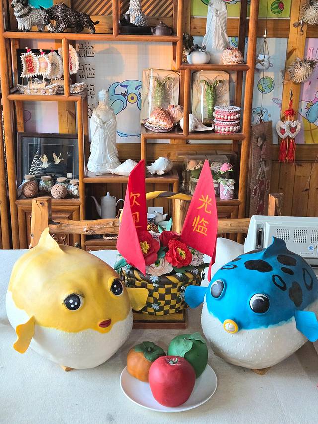 新开的秘密花园!在十里渔家的联排小屋里,李海花面塑体验馆可以亲手做河豚。这里是非遗文化的传承之地,亲手体验面塑的乐趣,感触很深