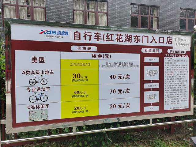 吃完早餐出发,红花湖骑行。