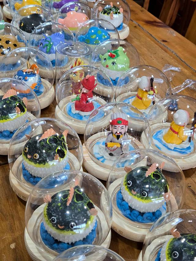 曹妃甸的十里海的非遗面塑馆-李海花面塑,这里可以做河豚面塑,比较简单。当然也能欣赏到李面花老师的其他大作