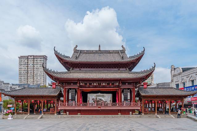 万寿宫历史文化街坐落在南昌市城市核心中山路商圈,是南昌最具历史韵味的地方之一。一走进万寿宫,仿佛瞬间穿越回了古代。古色古香的建筑,青石板路,雕梁画栋,处处散发着浓厚的历史气息。飞檐翘角的楼阁,红墙黛瓦的房屋,随便一拍都是大片。