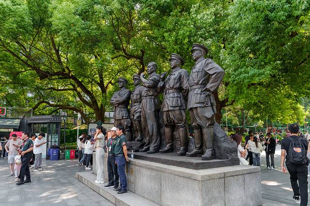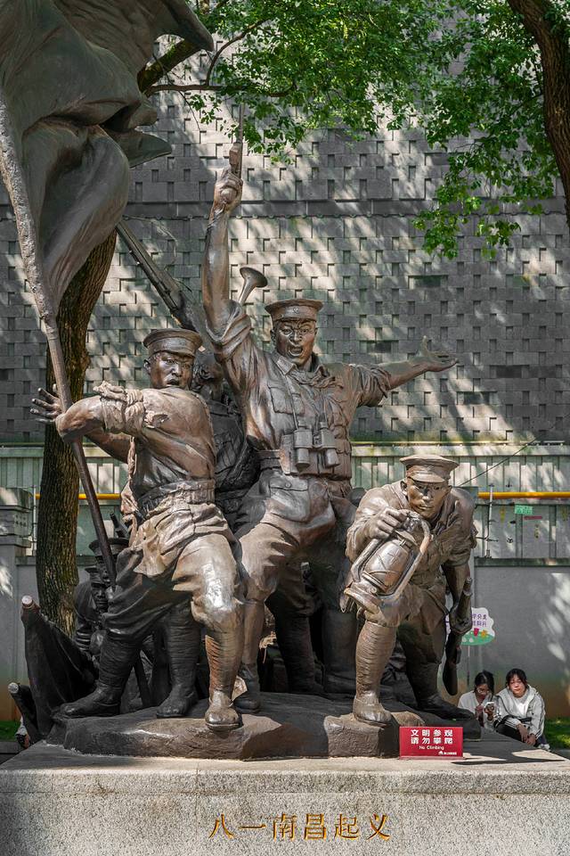 建军雕塑广场是为了纪念八一南昌起义而建,工程项目总占地面积约16000平方米。广场东西轴线上设置的3组雕塑,以“集结、渡江、起义”为重点和主体,突出了八一南昌起义的鲜明特色;南北两侧的6组雕塑则分别展示了土地革命时期、抗日战争时期、解放战争时期、社会主义建设时期、改革开放时期以及强军兴军新时期六个不同阶段的人民军队形象。这里的雕塑栩栩如生,气势磅礴,让人不禁对革命先辈们的英勇事迹肃然起敬,是进行爱国主义教育的绝佳场所。