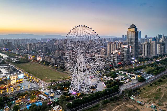 南昌之星摩天轮是南昌的地标性建筑之一。它高约160米,是世界上第三高的摩天轮。坐在摩天轮上,随着轿厢缓缓上升,可以俯瞰到南昌市区的美丽景色,赣江两岸的风光尽收眼底。尤其是在夜晚,灯光璀璨,景色更是迷人,非常适合情侣约会或者家庭出游。