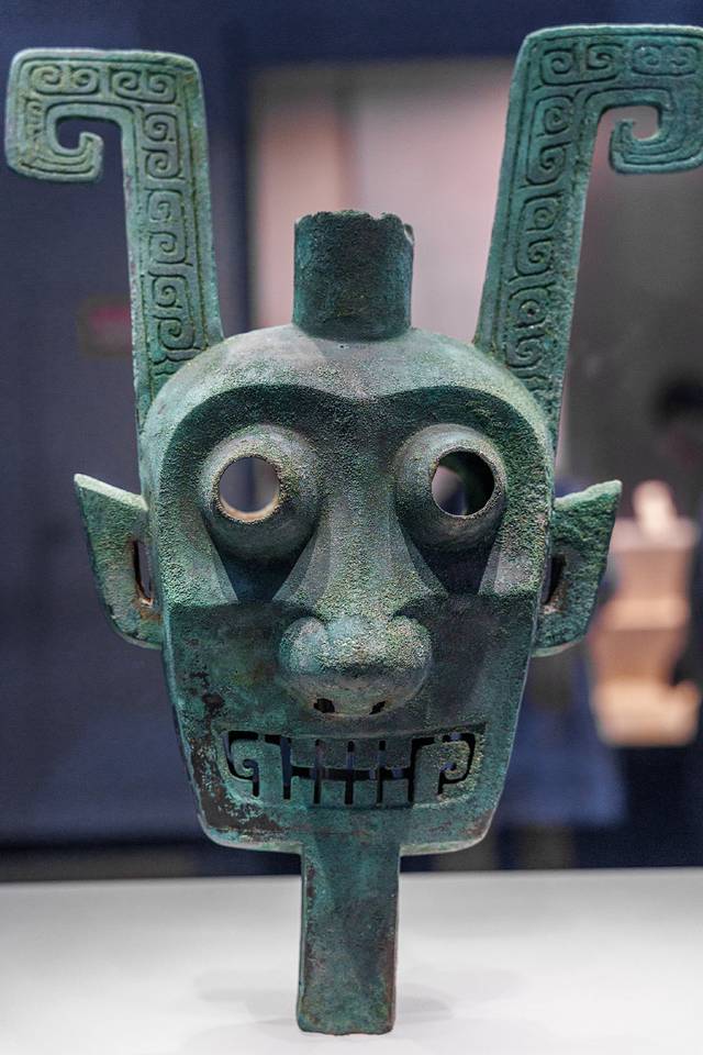 2、商双面神人青铜头像:神秘双面神人,反映商代南方信仰