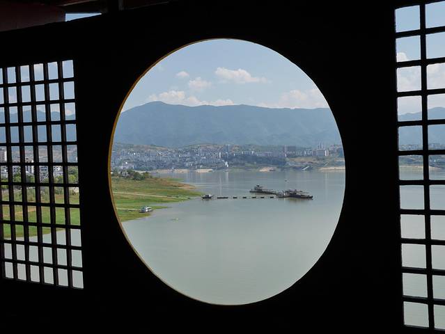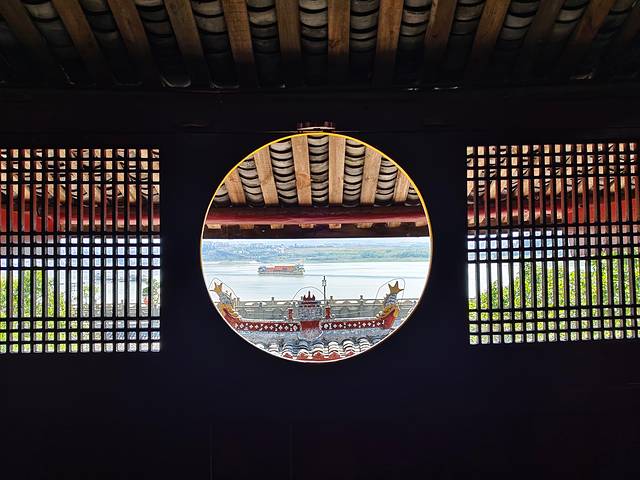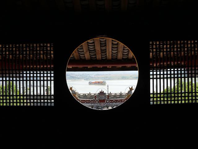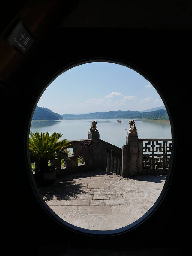 进入塔楼,拾阶而上,一层比一层矮,一层比一层陡,到了顶楼正常人都无法站立。而且透过这个巨大的圆窗,可以看到江对岸不同的风景,每一帧都是如特的景致。