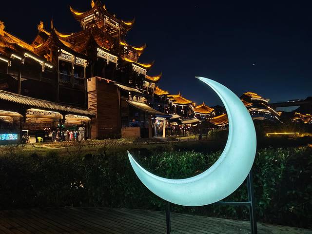 入夜,一轮弯月,不知是天上的更美,还是人世间的更美。