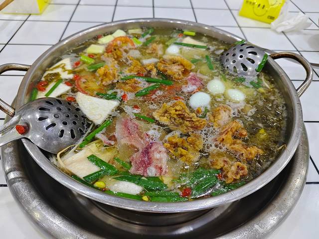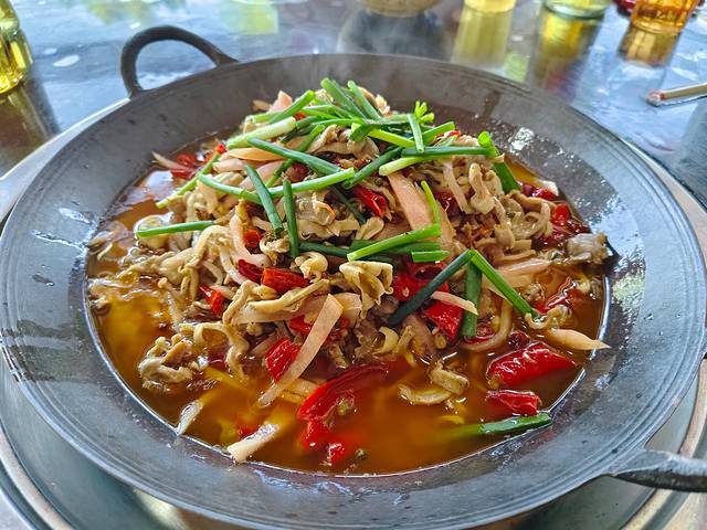 很多年前去贵州荔波的时候,吃过一道麻辣鸡杂,香辣浓郁,非常下饭。此次来黔江还有一个目的,那就是品尝当地最有名气的黔江鸡杂。到了黔江,真正吃到嘴里才发现,原来我心心念念的黔江鸡杂不是麻辣料炒出来的,而是干锅煨出来的,里面除了鸡杂还加了很多酸萝卜丝,酸辣开胃。但是风味和我记忆中的贵州鸡杂完全不一样。