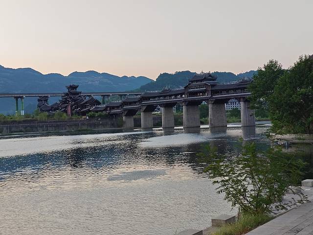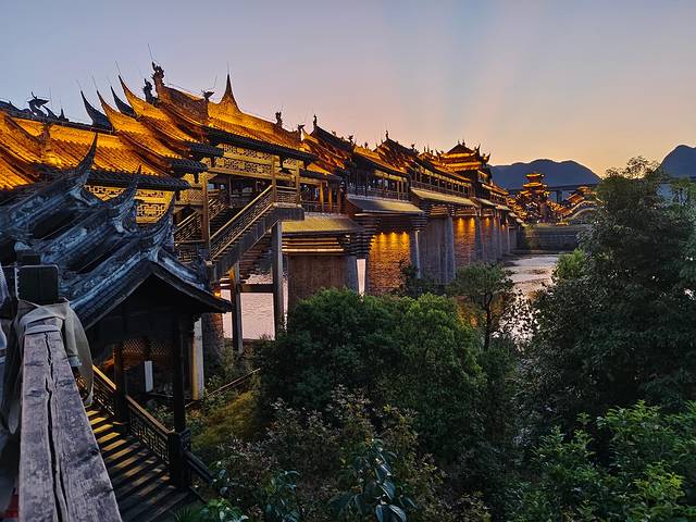 夕阳西下,和游客一样,当地百姓也喜欢到风雨桥来遛弯,散心,赏月,这份美景对于他们来说,早已变成一种习惯。