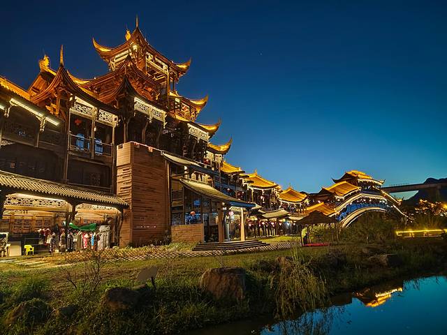 夜幕降临,风雨桥华灯初上,更显得她的大气与精致之美。
