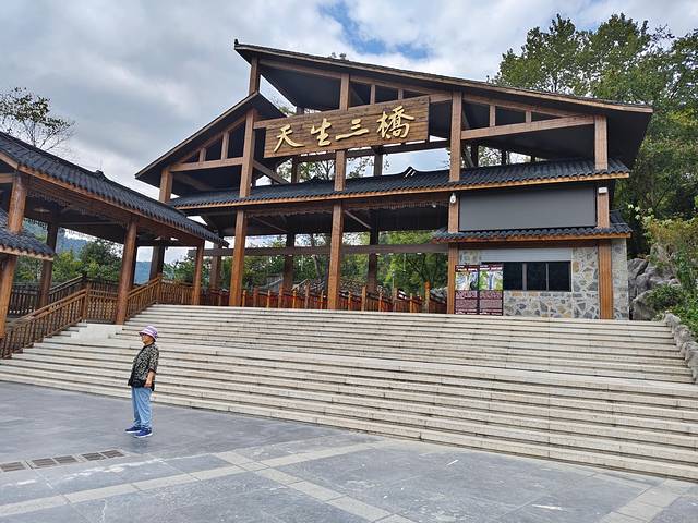 没事,反正我们也来了,那就入园观景吧!就是图中这个正门,我们当入园时被告知,不行!你们的票不能从这个门进,如果从这个门进,你们要再补50元钱。我奇怪,我是在携程中上买的全价票,一票全含的啊。结果工作人员说要从这个门进,里面加了一个玻璃观景台和旋转滑梯,这个50元收的就是这个钱。如果不补50元钱,125元的票要从1号门进。。。那么1号门在哪呢???走了十多分钟路,我们找到了1号门,噢,原来就是我之前开车来的时候,看到几百人排队的那个地方。。。。为什么大家都不走正门都来排队1号门,据后来了解,不仅是加50元钱的事,还有就是坐了旋转滑梯,就不能看到天生三桥最经典的居高临下的角度了。。。那这么重要的差异景区为什么不说明呢??收费不怕,你要做到明示,或是写上套餐1、2、3让游客自行选择也好,为什么还要搞这种套路,实再是有损一个5A景区的形象。