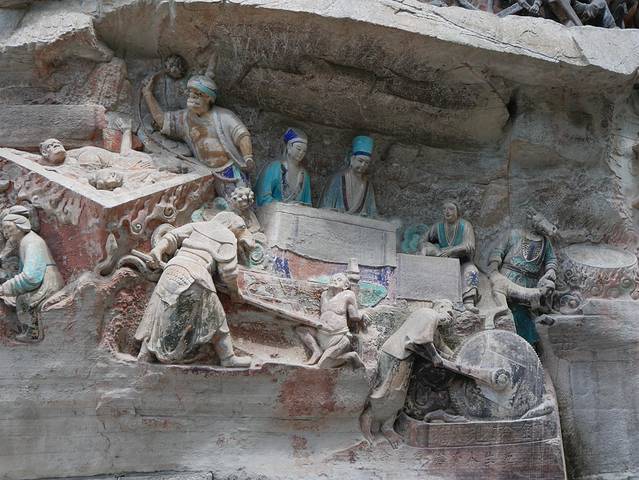 但大足石刻还有他的独特之处,那就是其它的石窟属于官刻,都是政府出资,修建的多是宗教和神明。但大足石刻是个人出资,修建的多数为传说、神话、鬼神等等。