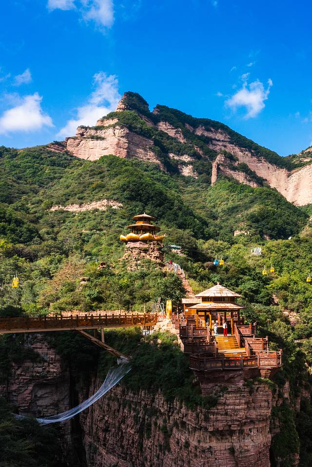 游玩路线推荐:游客中心—军工湖—观光车或小火车—挂壁观光电梯—五福观景台、莲花观—天上人家—缆车—龙门夹峡谷—挂壁栈道—三岔口换乘装甲车—黄崖洞—兵工厂旧址—崔振芳公园—瓮圪廊大峡谷—太行山广场—观光车或小火车—景区出口
