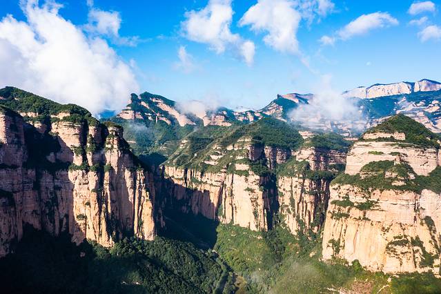 然而,黄崖洞的美,不仅仅在于它的历史。这里的自然风光,同样令人陶醉。山间云雾缭绕,如诗如画,仿佛是大自然特意为这片土地披上了一层神秘的面纱。登高望远,只见群山连绵,层峦叠嶂,令人心旷神怡,仿佛所有的烦恼都随着山风飘散而去。
