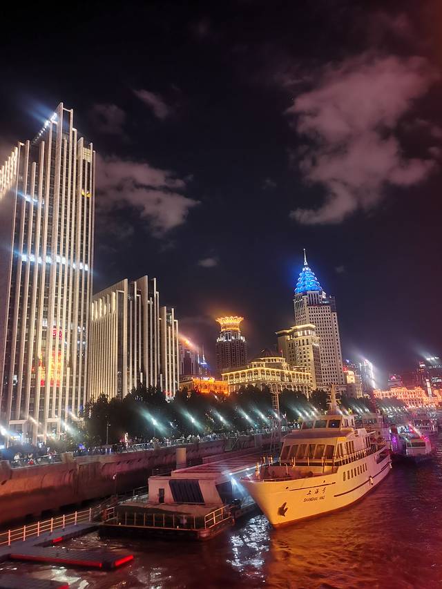 下午坐游览汽车2号线到南京步行街,浏览和平饭店和上海老建筑,夜看东方明珠灯光,吃蟹黄包(好吃)后回酒店。