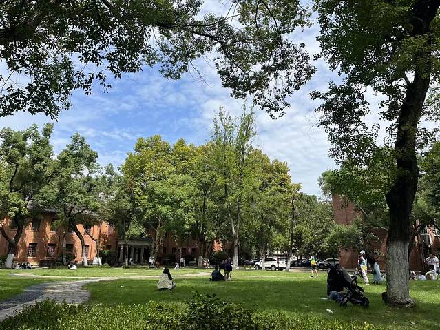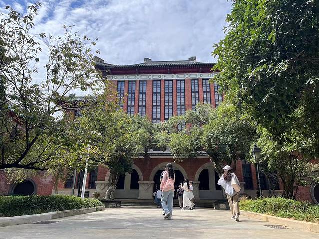 进了湖南大学,不用导航,跟着人流走,就能达到岳麓书院。