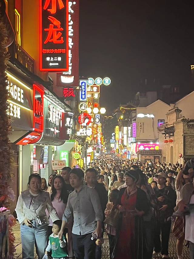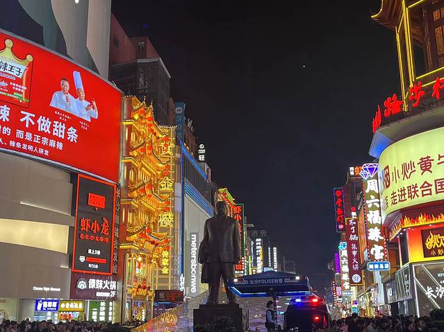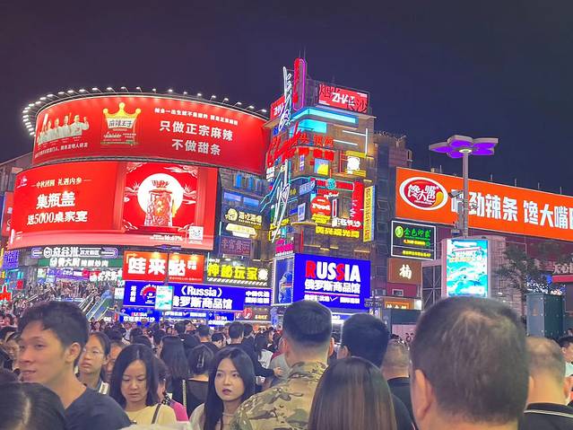 霓虹灯光下,手捧“茶颜悦色”奶茶,在人潮汹涌中浪打浪,好热闹